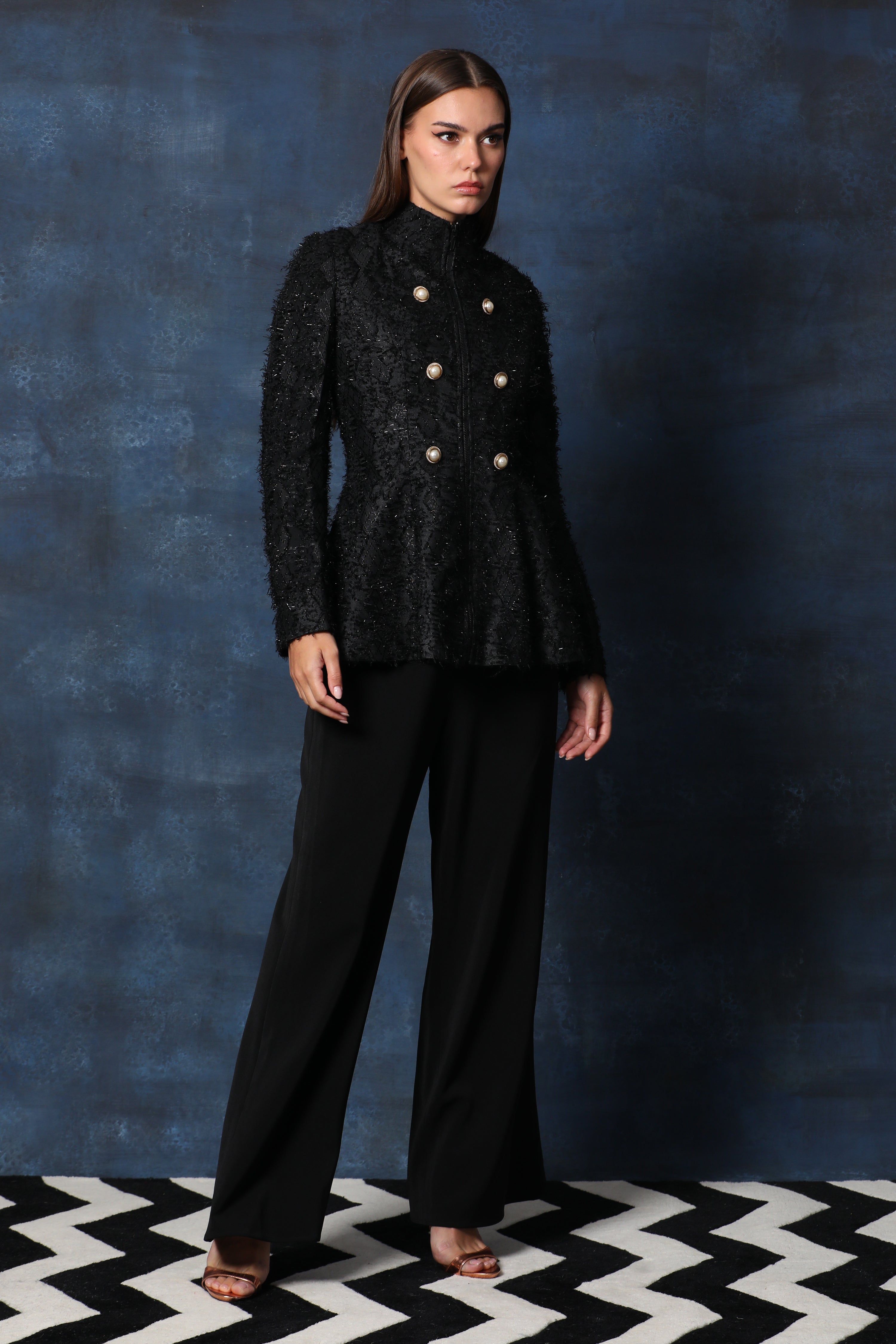 Black Turtleneck Full Sleeve Blazer in Embellished Base